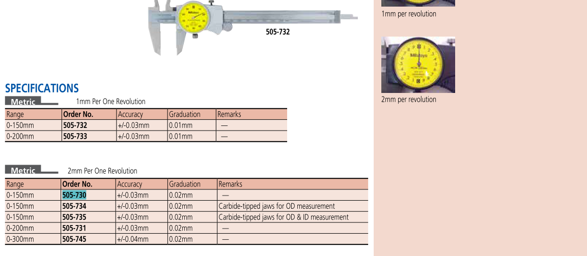 Mã hàng 505-732 là thước cặp cơ khí 0-150mm/0.01mm