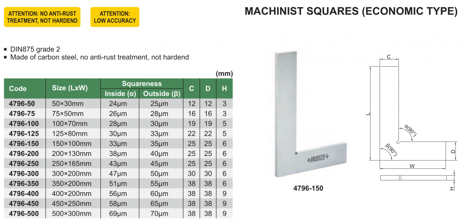 Thước đo góc INSIZE 4796-150 , MACHINIST SQUARES (ECONOMIC TYPE ) 4796-150
